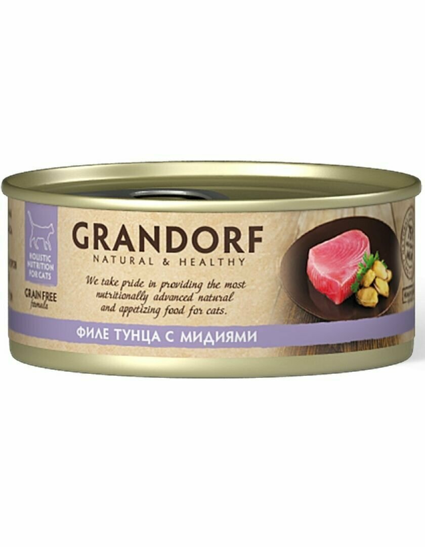 Grandorf консервы для кошек, филе тунца с мидиями 70г Grandorf (Грандорф) Grandorf консервы д/к филе тунца/мидии 70г