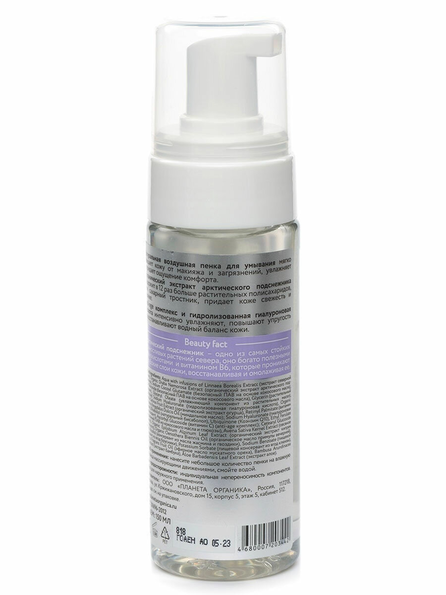 Натуральная воздушная пенка Planeta Organica Arctica для умывания Очищение и увлажнение, 150 мл