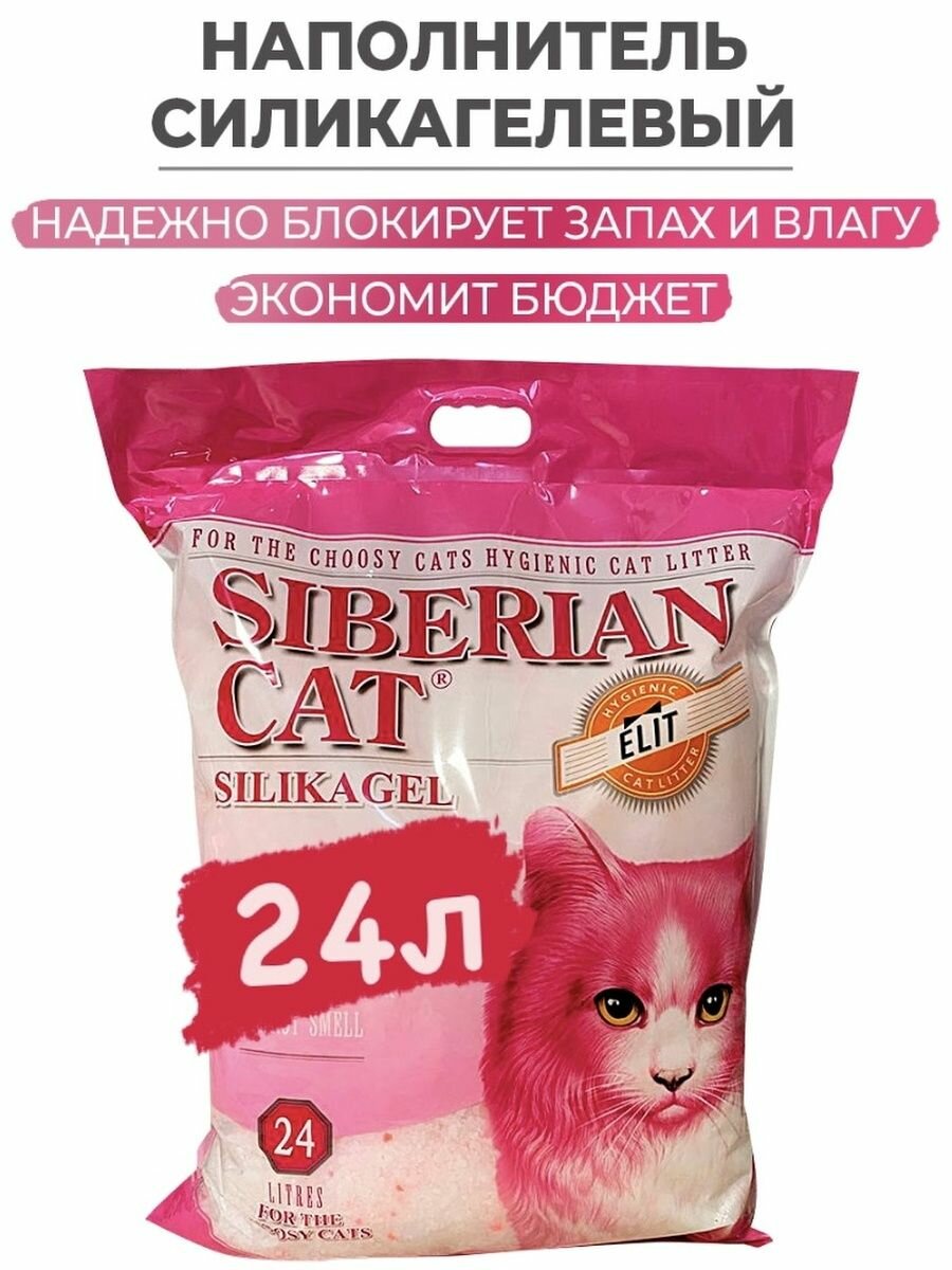 Сибирская Кошка Элита впитывающий силикагелевый наполнитель для привередливых кошек, розовые гранулы - 24 л