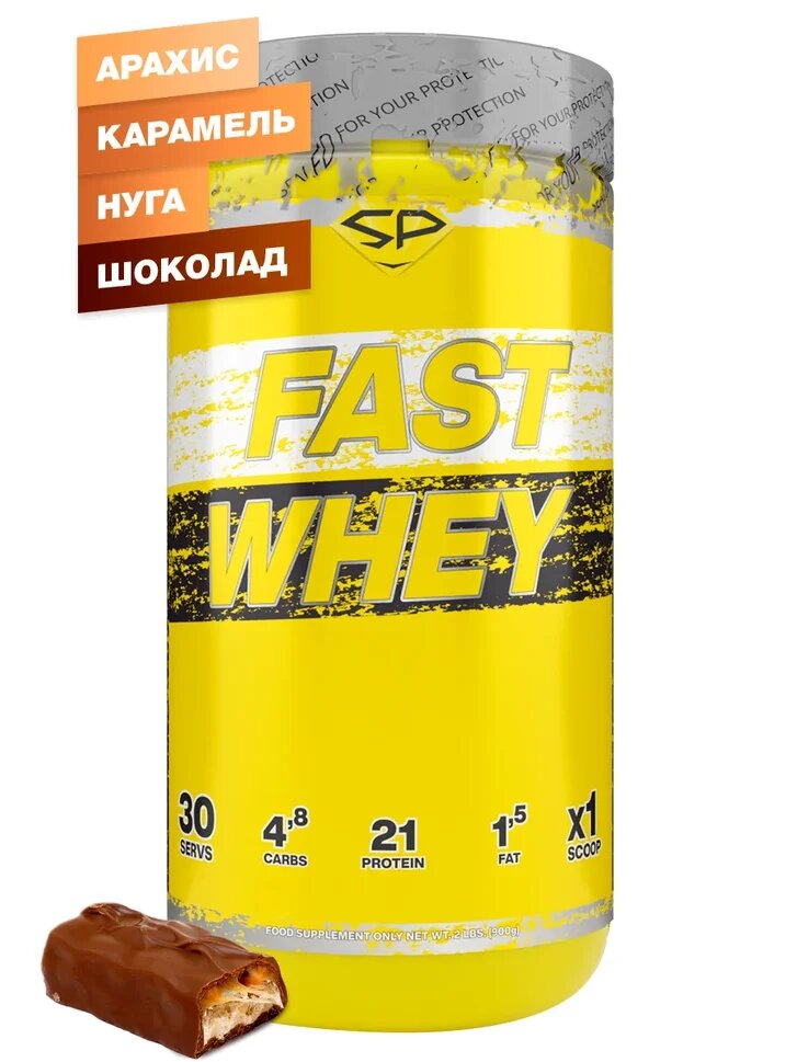 Купить Протеин сывороточный STEELPOWER / Протеиновый коктейль для похудения / Сывороточный протеин FAST WHEY, 900 гр, Арахис Карамель Нуга Шоколад (Сникерс)