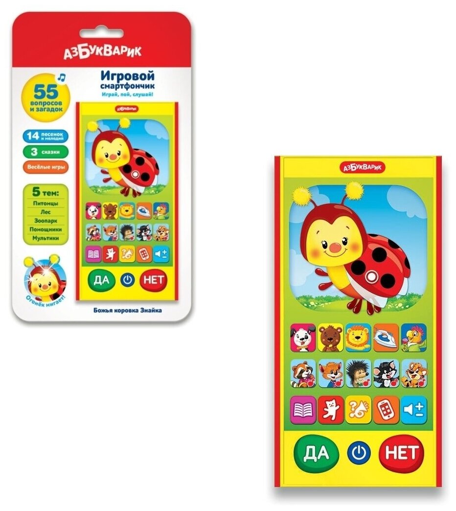 Ниже Вы можете прочитать отзывы на Интерактивная развивающая игрушка Азбукварик Смартфончик Божья коровка Знайка, красный/желтый, ознакомится с подробными характеристиками, посмотреть интересные обзоры и фотографии на Интерактивная развивающая игрушка Азбукварик Смартфончик Божья коровка Знайка, красный/желтый.