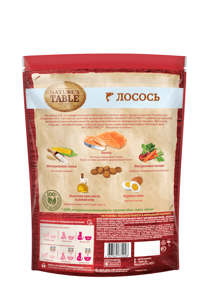 Купить NATURE’S TABLE для взрослых кошек с лососем (0,65 кг)