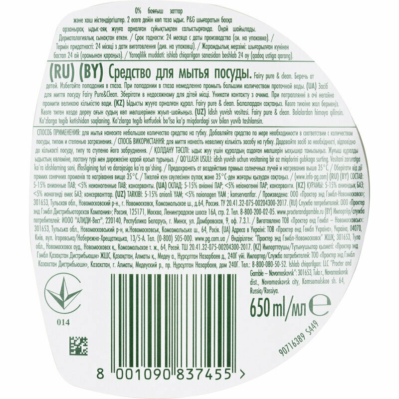 Средство для мытья посуды Fairy Pure & Clean - Procter and Gamble
