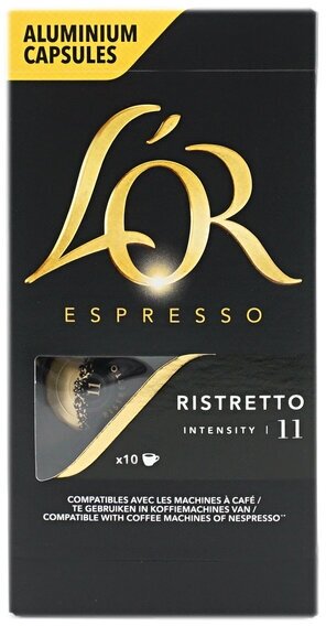 Кофе в алюминиевых капсулах L'OR "Espresso Ristretto" для кофемашин Nespresso, 10 порций, 4028609 В комплекте: 1шт.