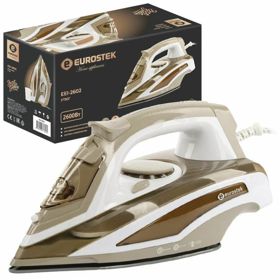 Утюг Eurostek EEI-2602 Мощность 2600Вт, длина подошвы: 24см, керамическая подошва, система самоочист .