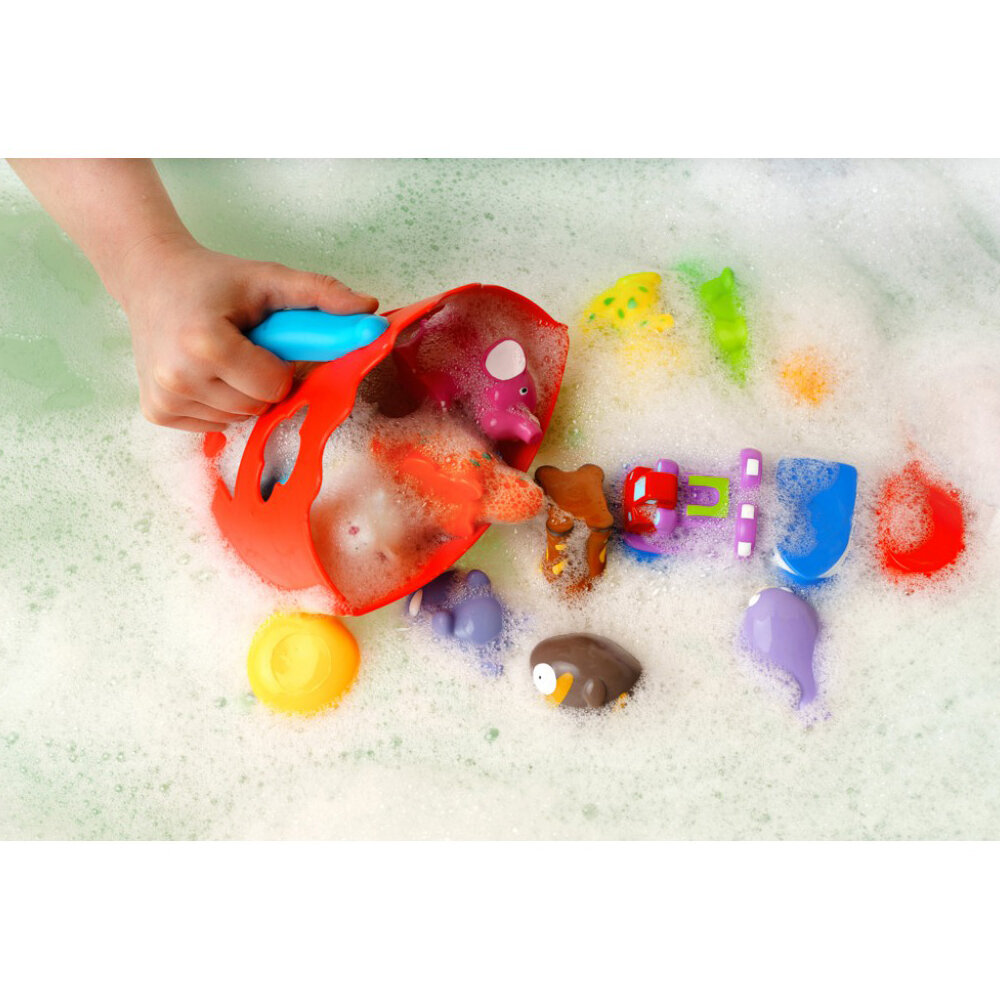 | Плюсы: | Вместительный, яркий. Удобно снимается с присоски. Быстро собирает игрушки. Хорошо держится на акриловой ванне. |