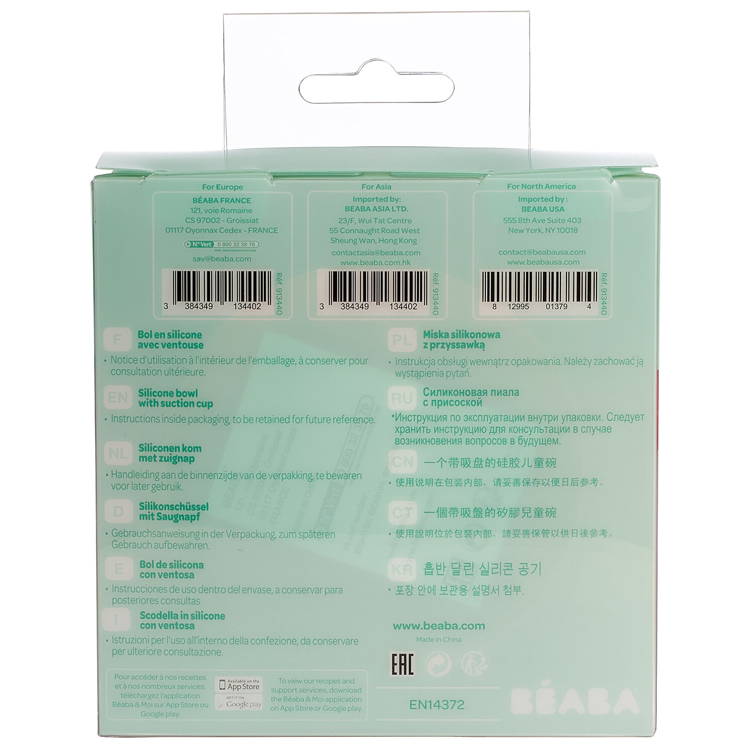 Тарелка Beaba из силикона / SILICONE SUCTION BOWL GREEN 913432