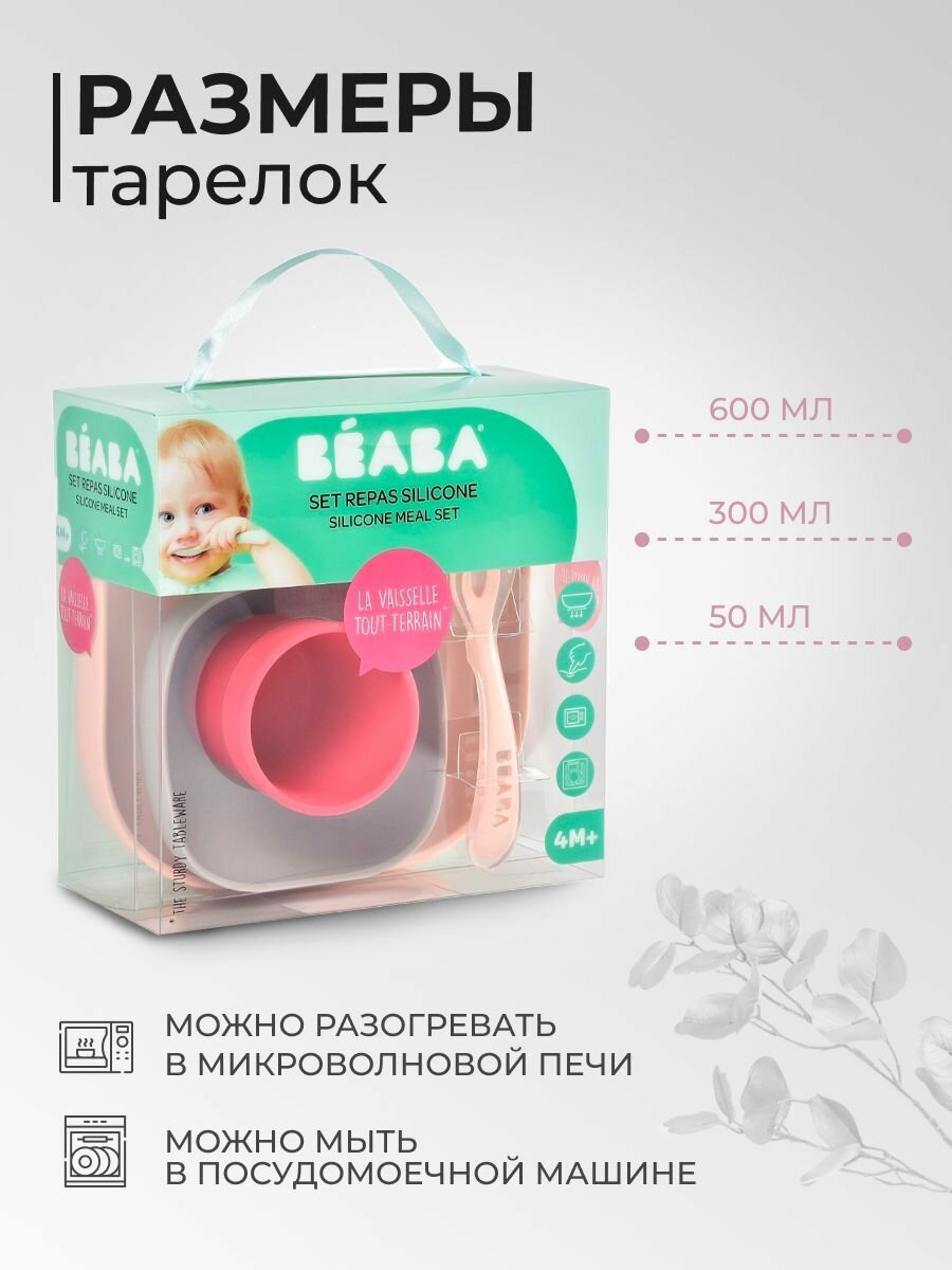 Купить Набор силиконовой детской посуды BEABA: 2 тарелки на присоске, стакан силиконовый, ложка детская для кормления и прикорма