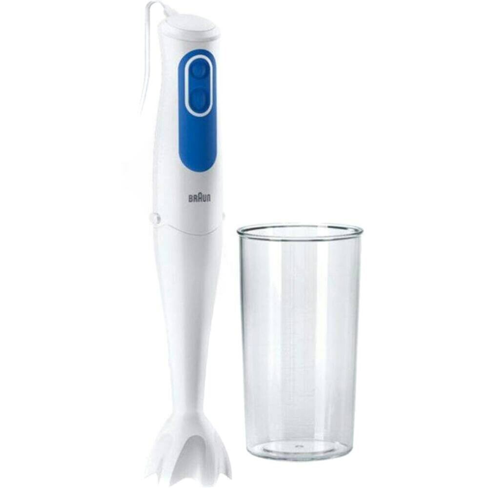 Ручной блендер Braun MQ 3000 Smoothie+ - Ручной блендер MultiQuick 3 с ножкой для смешивания из нержавеющей стали, 700 Вт, включая чашку для смешивания объемом 600 мл, белый/синий