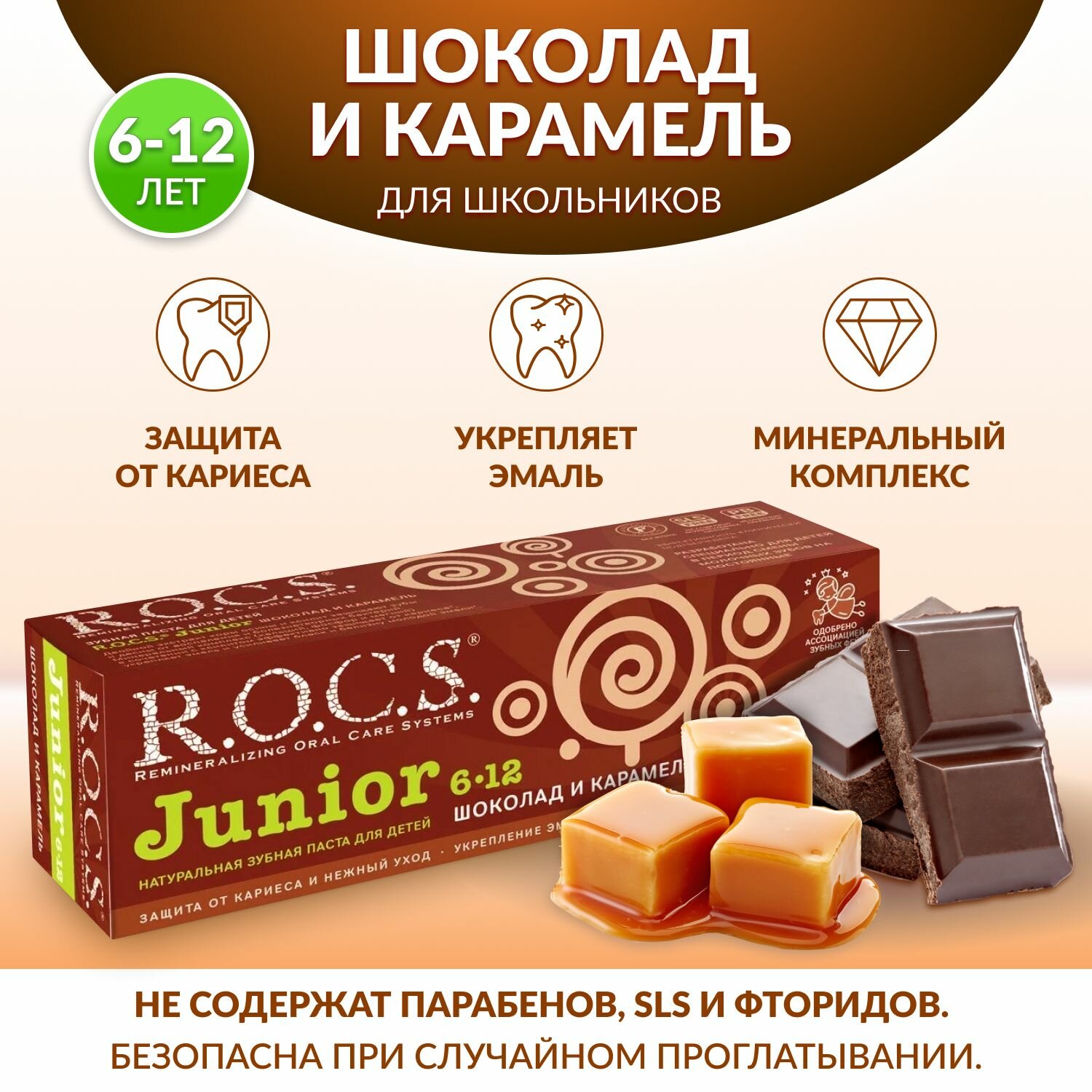 Зубная паста R.O.C.S. Junior "Шоколад и карамель" 6-12 лет, 74 г./В упаковке шт: 1
