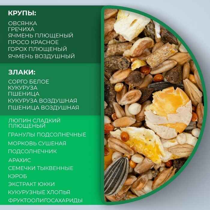 | Плюсы: | Много всего в корме и фрукты, и злаки, и овощи. Отличный корм |