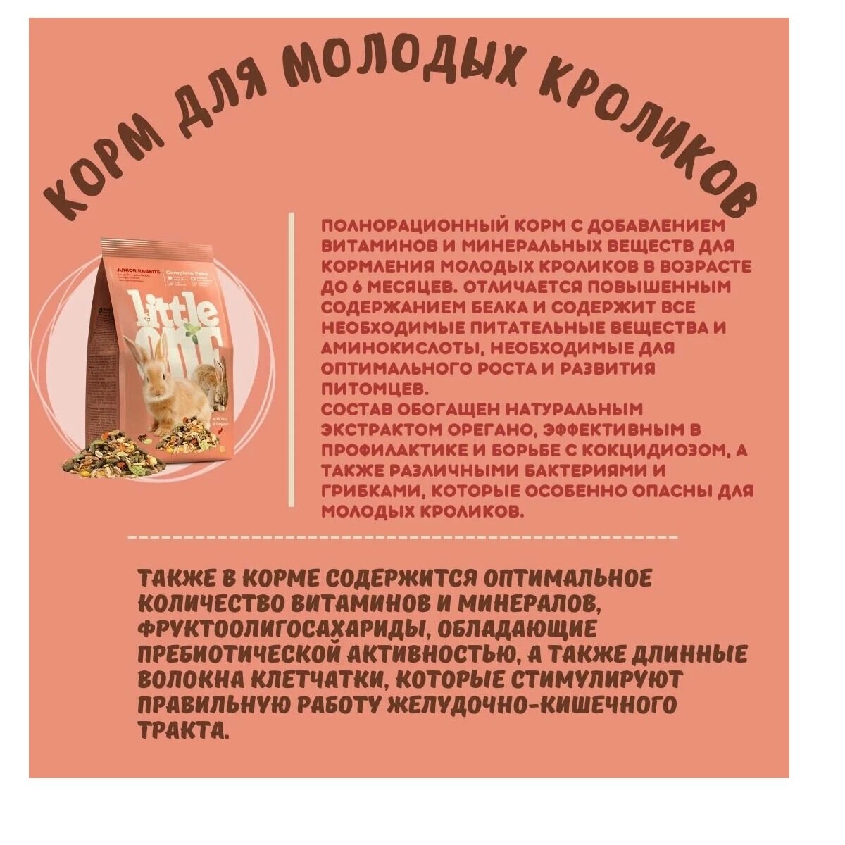 Замечательй состав,приятный запах,объм упаковки Замечательный продукт даже для взррслых кроликов |