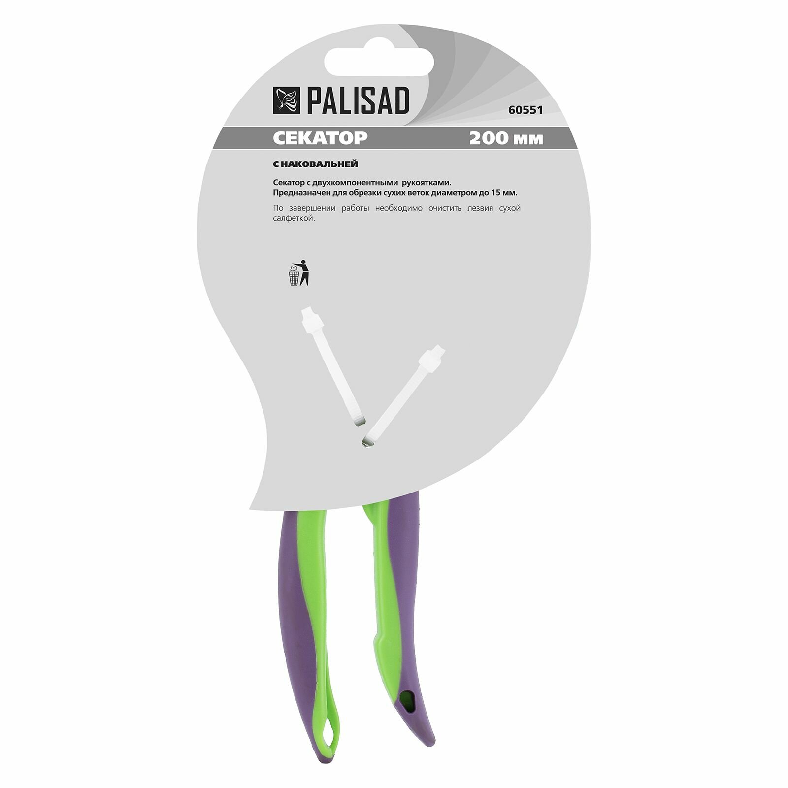 Секатор с наковальней, 200 мм, двухкомпонентные рукоятки, Palisad 60551