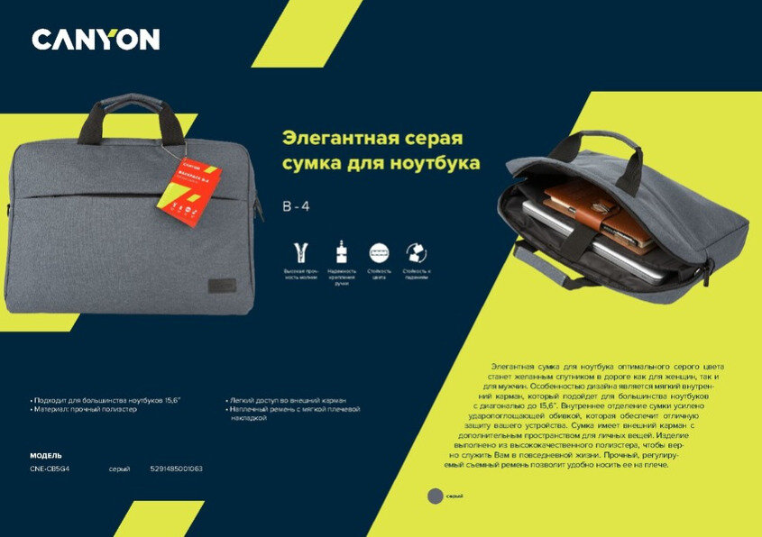 СохранитьСумка Canyon Elegant Gray laptop bag CNE-CB5G4 интересное: