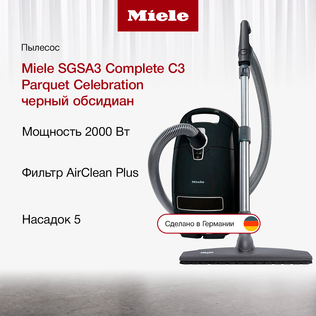 Пылесос Miele c насадкой для паркета- бережный уход за чувствительными твердыми покрытиям; SGSA3 Complete C3 Parquet Celebration PowerLine, черный обсидиан 41GSA330RU