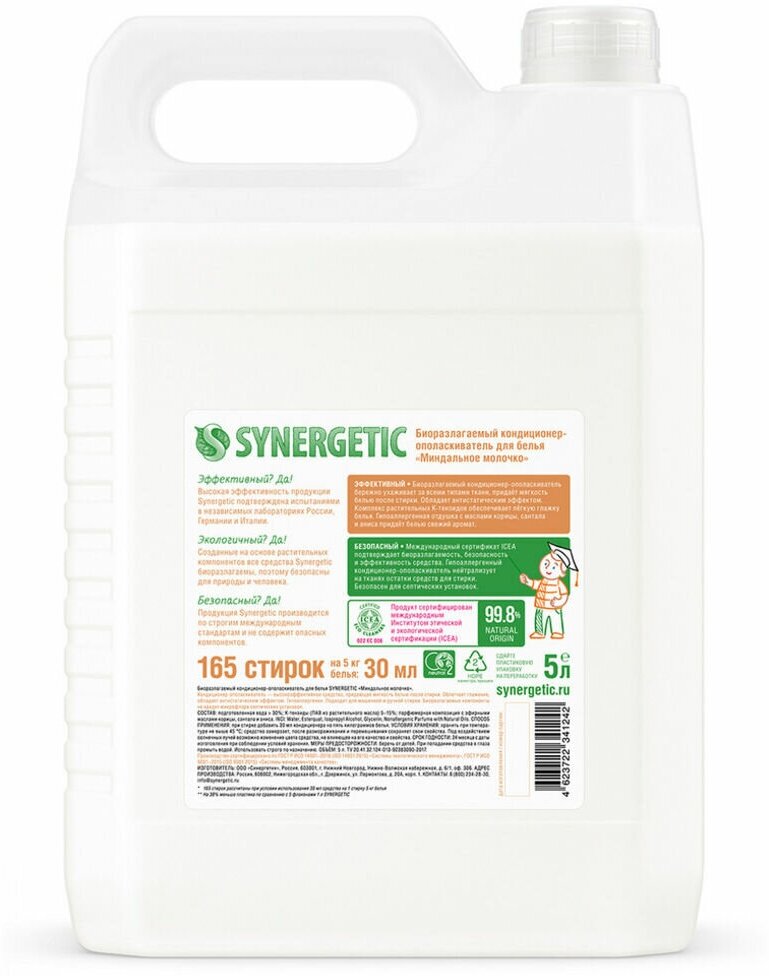 Купить Кондиционер для белья SYNERGETIC Миндальное молочко5л 4623722341242