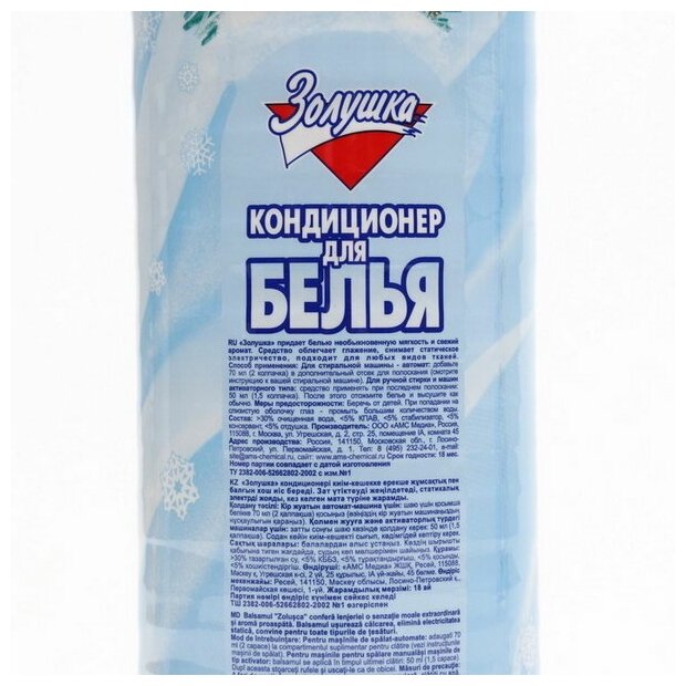 Кондиционер для белья Золушка Русская Зима, с антистатиком, 750 мл