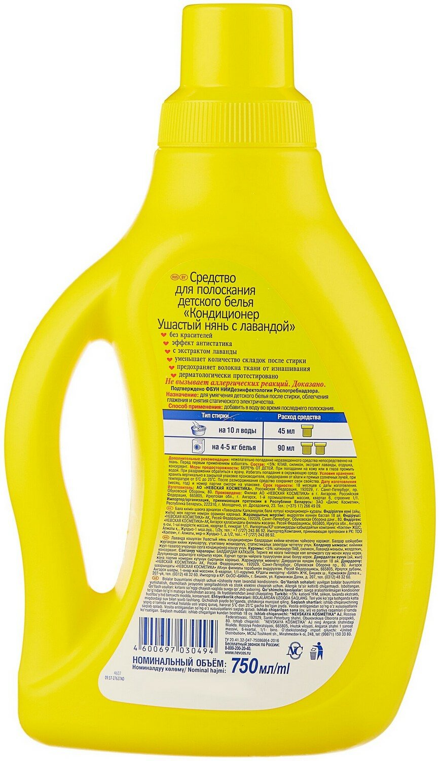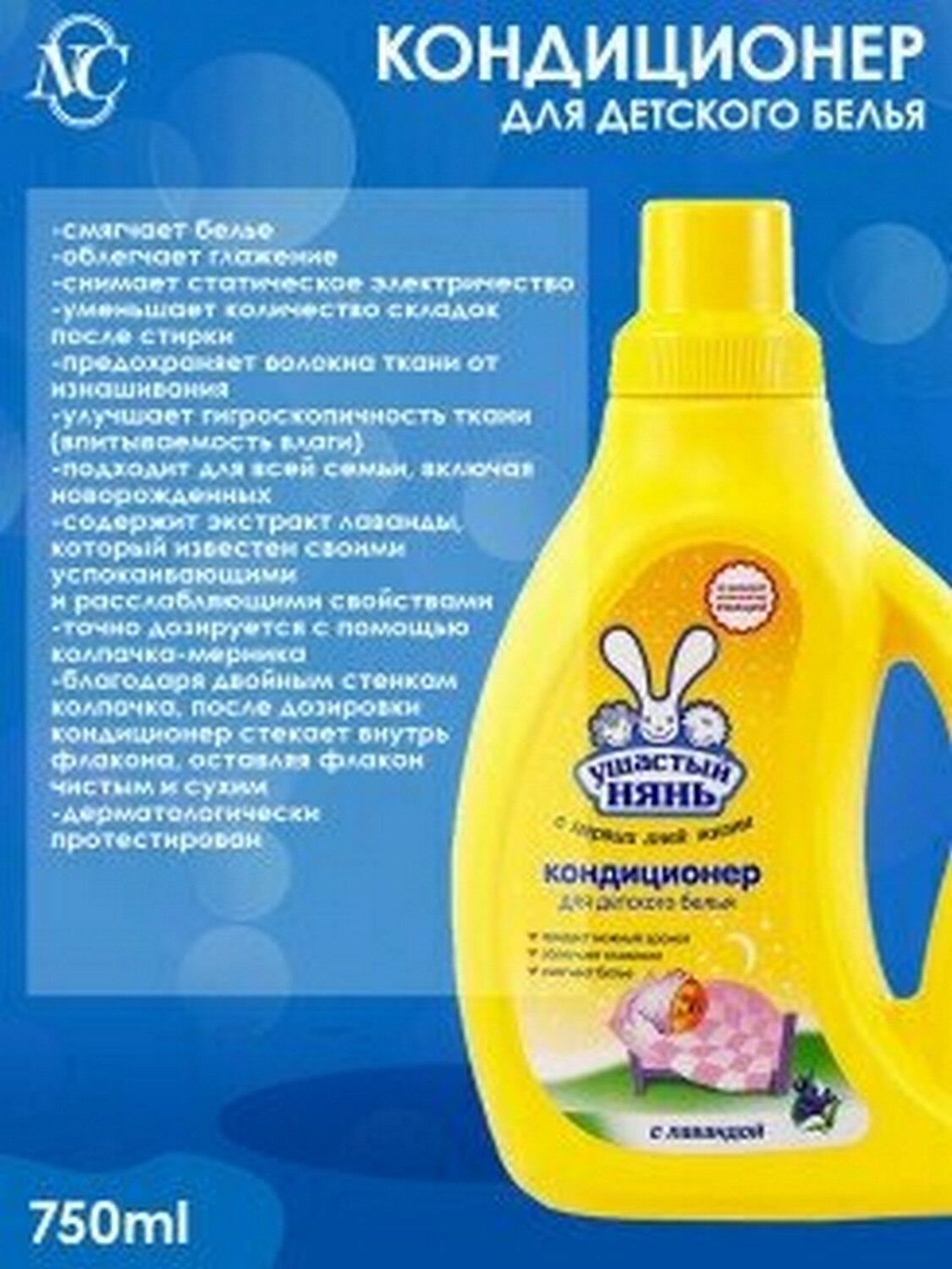 Невская косметика Кондиционер для детского белья Ушастый нянь Сладкий сон с лавандой 750 мл