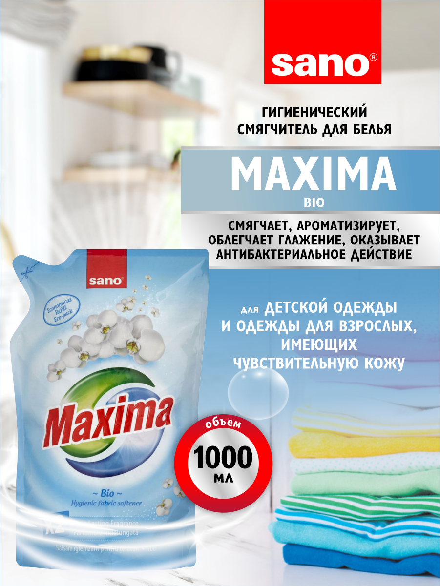 Sano Maxima Смягчитель для белья Bio 5 в 1: аромат, нейтрализация запаха, мягкость, антистатик, лёгкая глажка запасной блок 1 л
