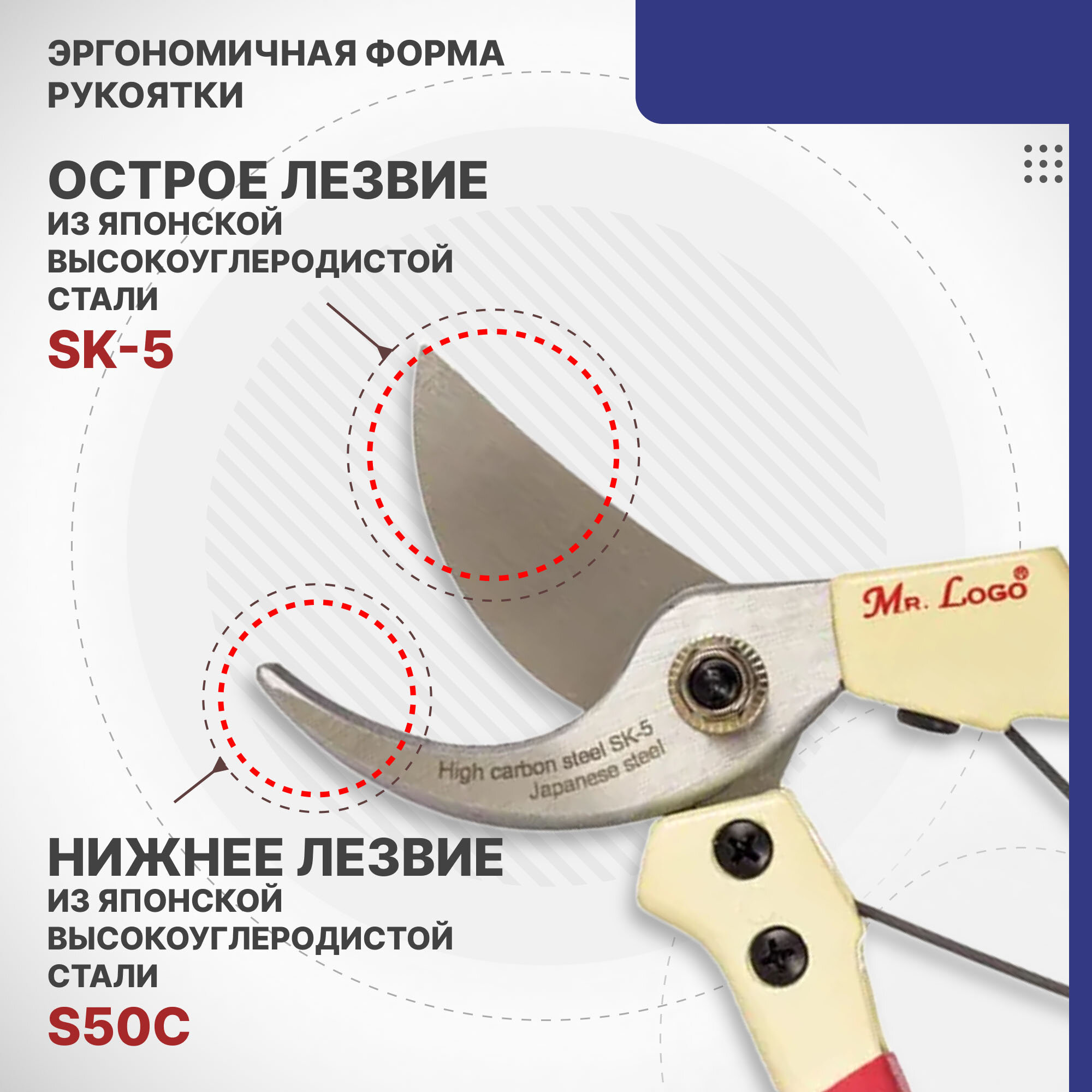 Секатор плоскостной для веток 180мм Mr. Logo, Секатор садовый 18см, Ножницы для сада