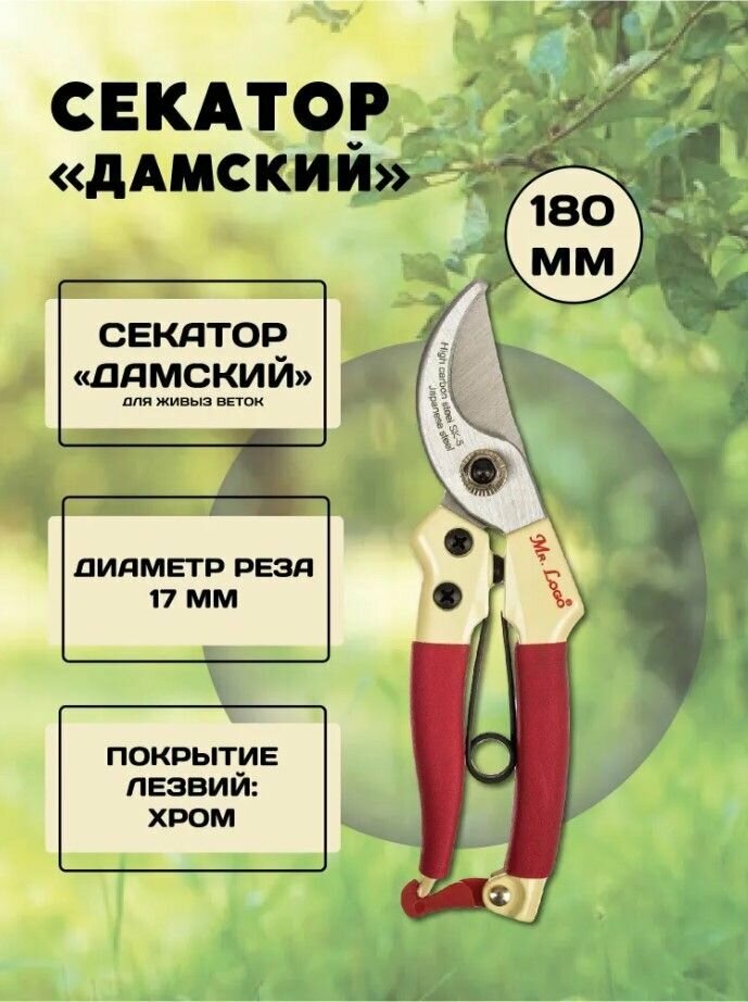 Секатор для живых веток "Дамский" 180мм Mr.Logo, 6809 интересное: