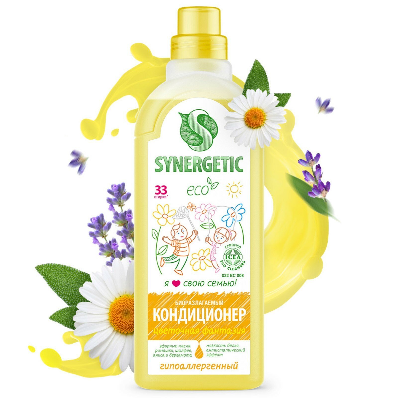 Synergetic Кондиционер для белья Synergetic "Цветочная фантазия", гипоаллергенный, 1 л