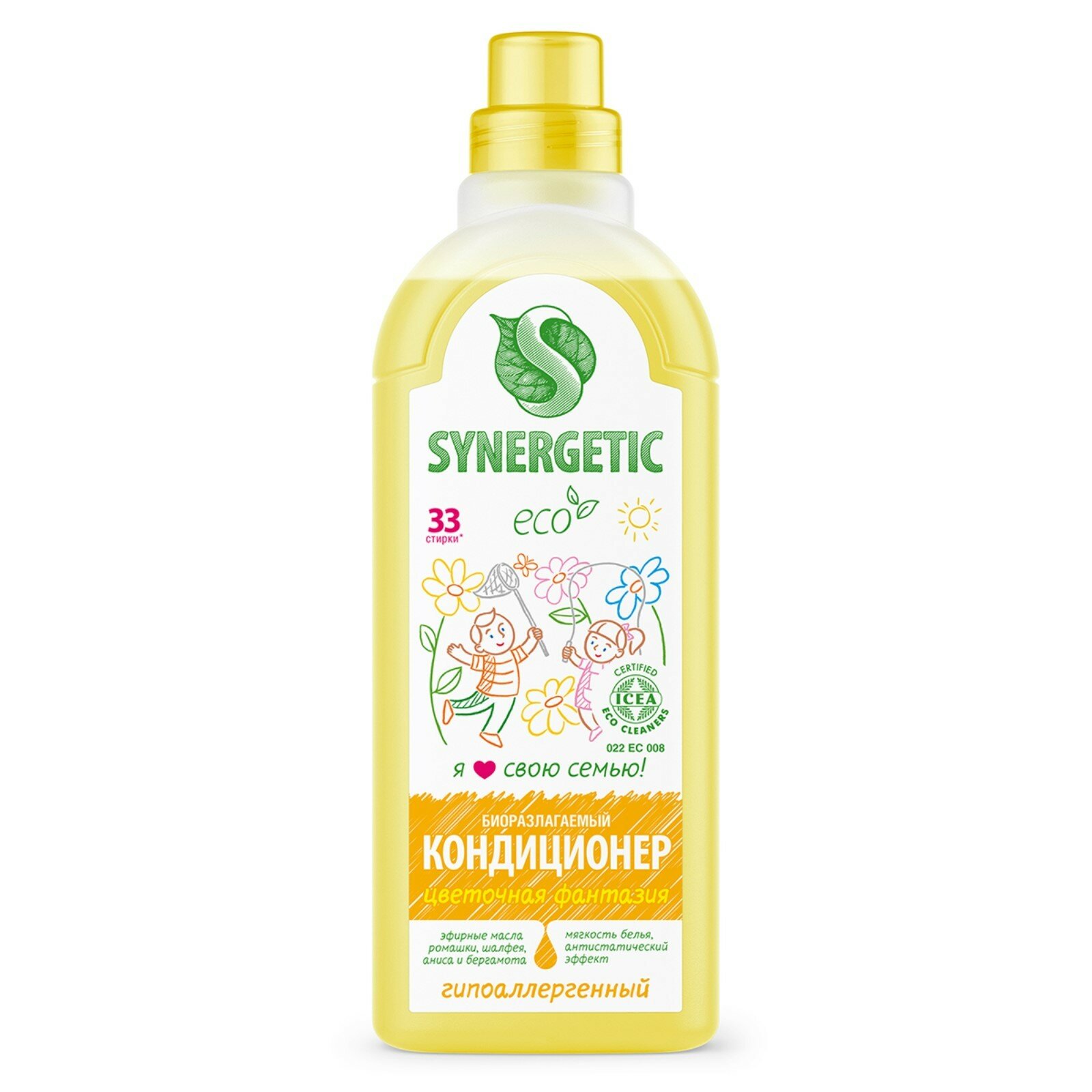 Кондиционер-ополаскиватель для белья SYNERGETIC "Цветочная фантазия", 1 л (33 стирки)