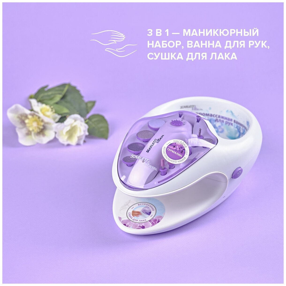 Аппарат для маникюра Scarlett, SC-MS95002, 11 насадок, 2 скорости, фиолетовый интересное: