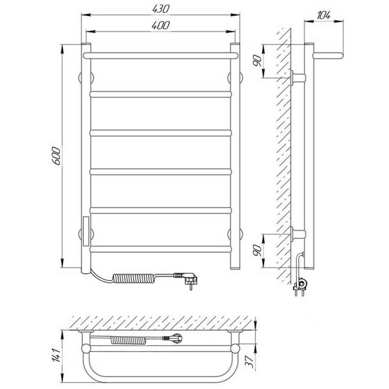Полотенцесушитель электрический 600x430 диммер слева Laris Прайм ЧК6 75201059