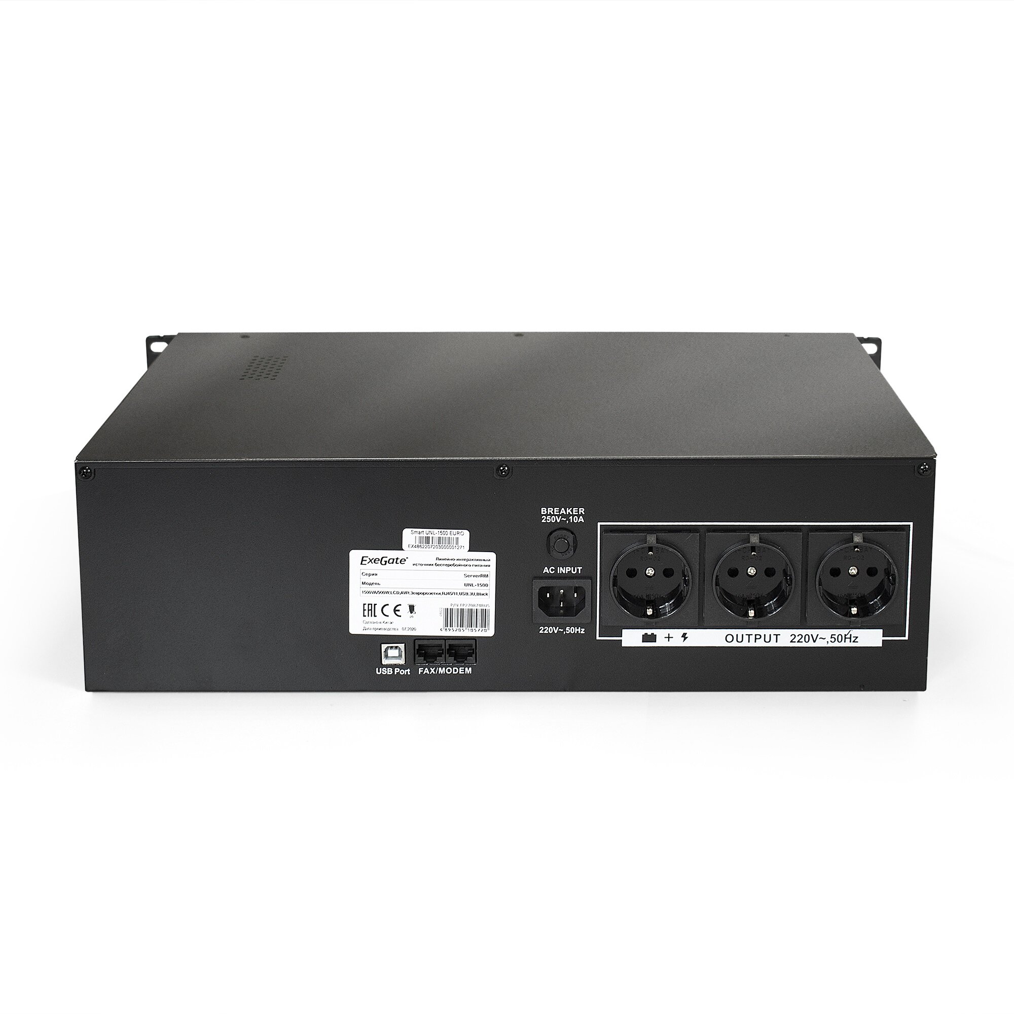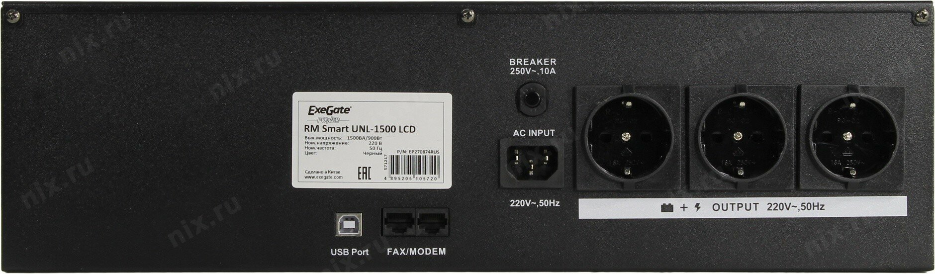 Источник бесперебойного питания ExeGate ServerRM. Unl-1500.lcd.avr.euro.rj.usb.3u. 1500VA/900W.LCD.A