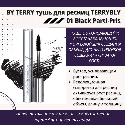 Ниже Вы можете прочитать отзывы на BY TERRY Тушь для ресниц TERRYBLY 8 мл, 01 Black Parti-Pris, ознакомится с подробными характеристиками, посмотреть интересные обзоры и фотографии на BY TERRY Тушь для ресниц TERRYBLY 8 мл, 01 Black Parti-Pris.