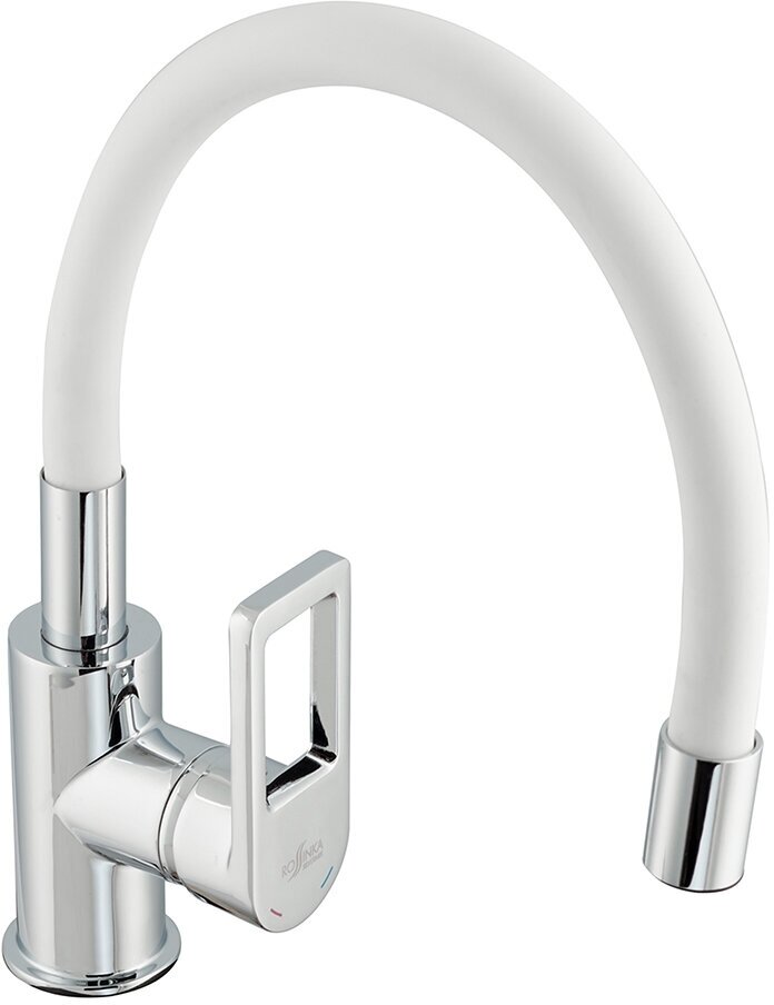 Смеситель одноручный (35 мм) для кухни с гибким цветным изливом, хром/белый