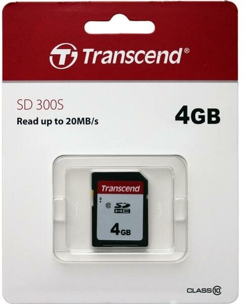 Карта памяти SDHC Transcend 4Gb 300S 20MB/s TS4GSDC300S, 1шт.