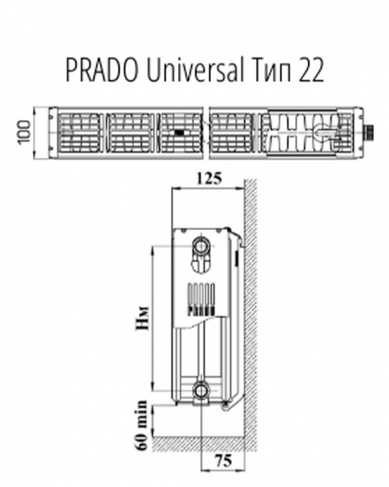 Радиатор стальной PRADO Universal 22/500/900 1956 Вт нижнее/боковое подключение (+2 кронштейна)