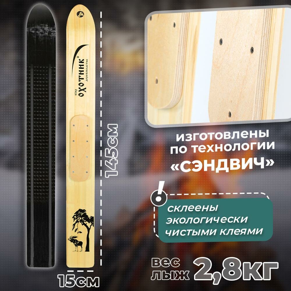 Лыжи Маяк Охотник дерево-пластиковые 145см х 15см + площадка для крепления