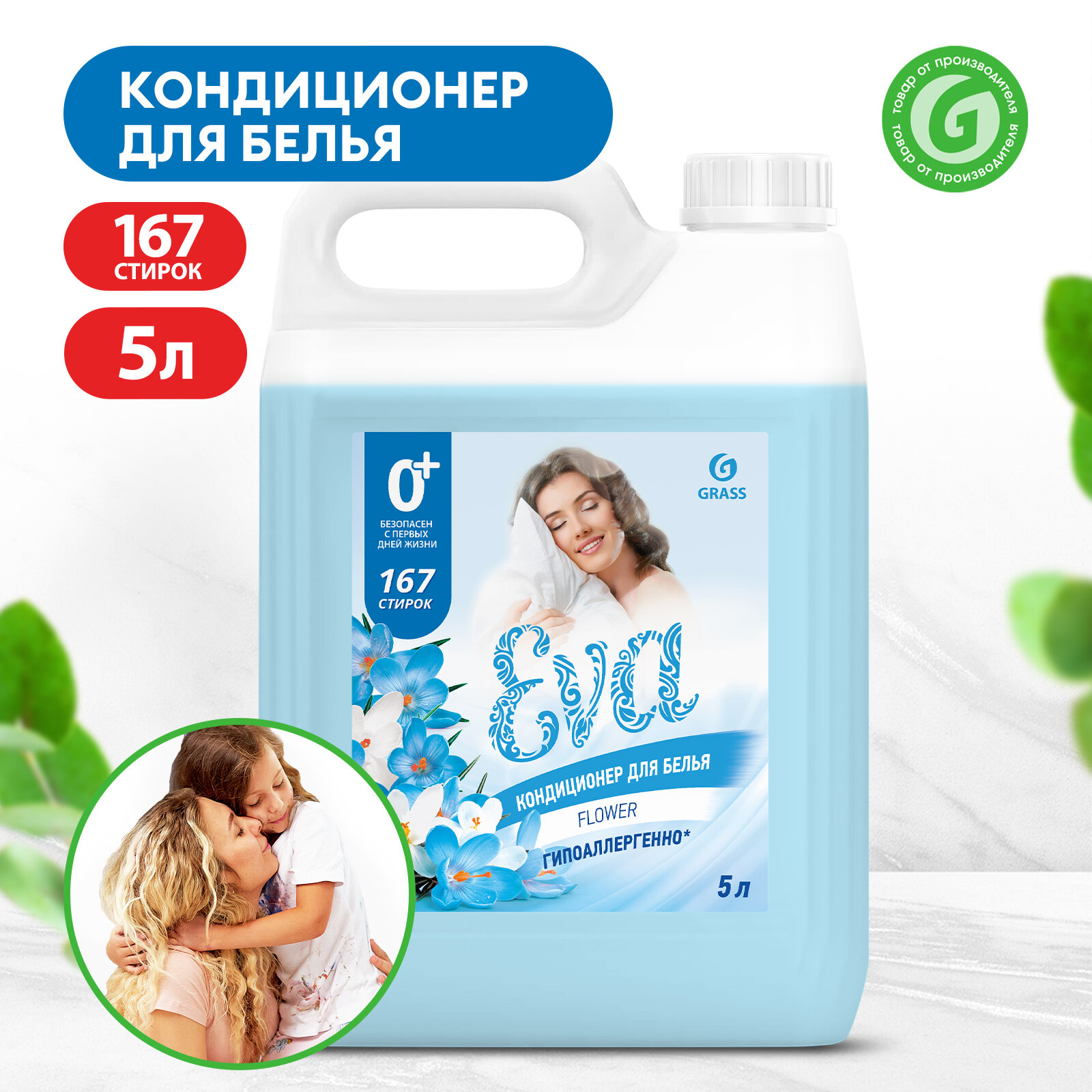Кондиционер - ополаскиватель для белья GRASS Eva гипоаллергенный с цветочным ароматом 5л