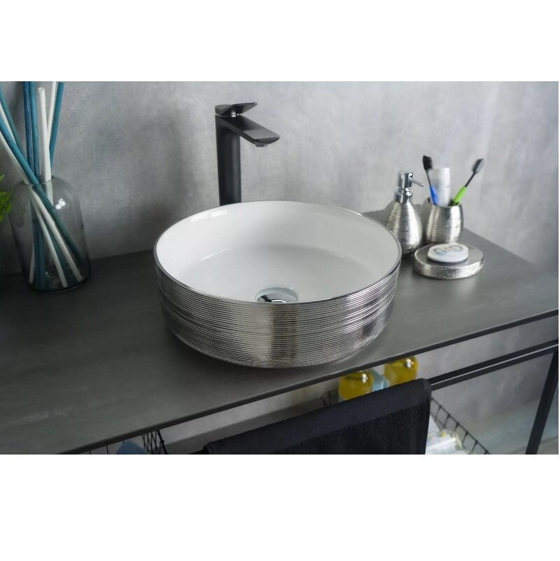 Раковина Gid LuxeLine D1357h131 36x36x12 см накладная цвет белый с серебром