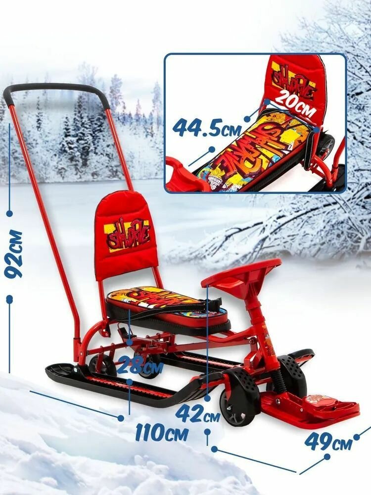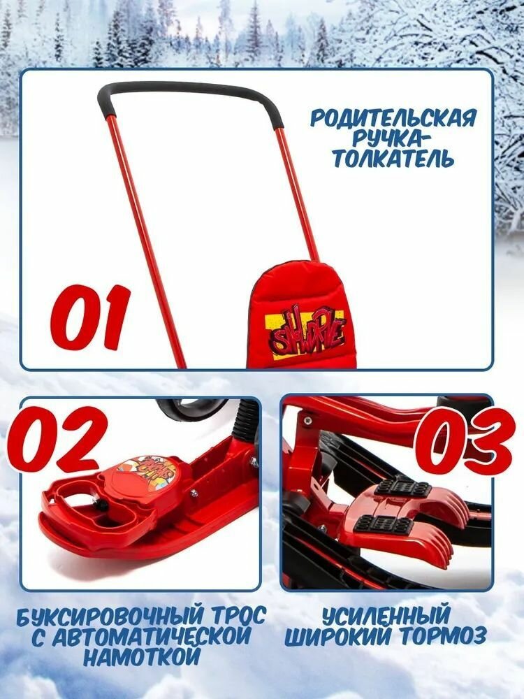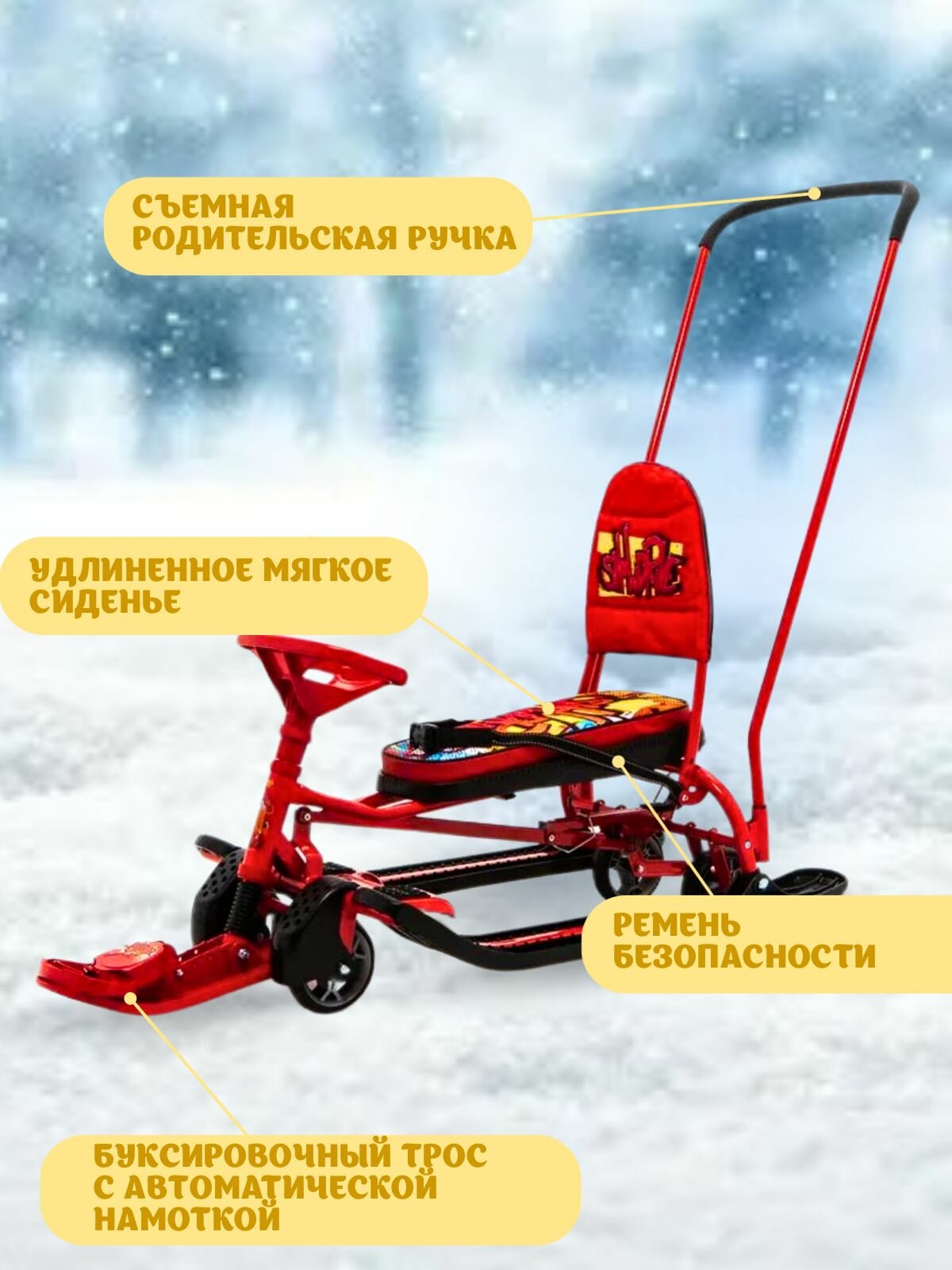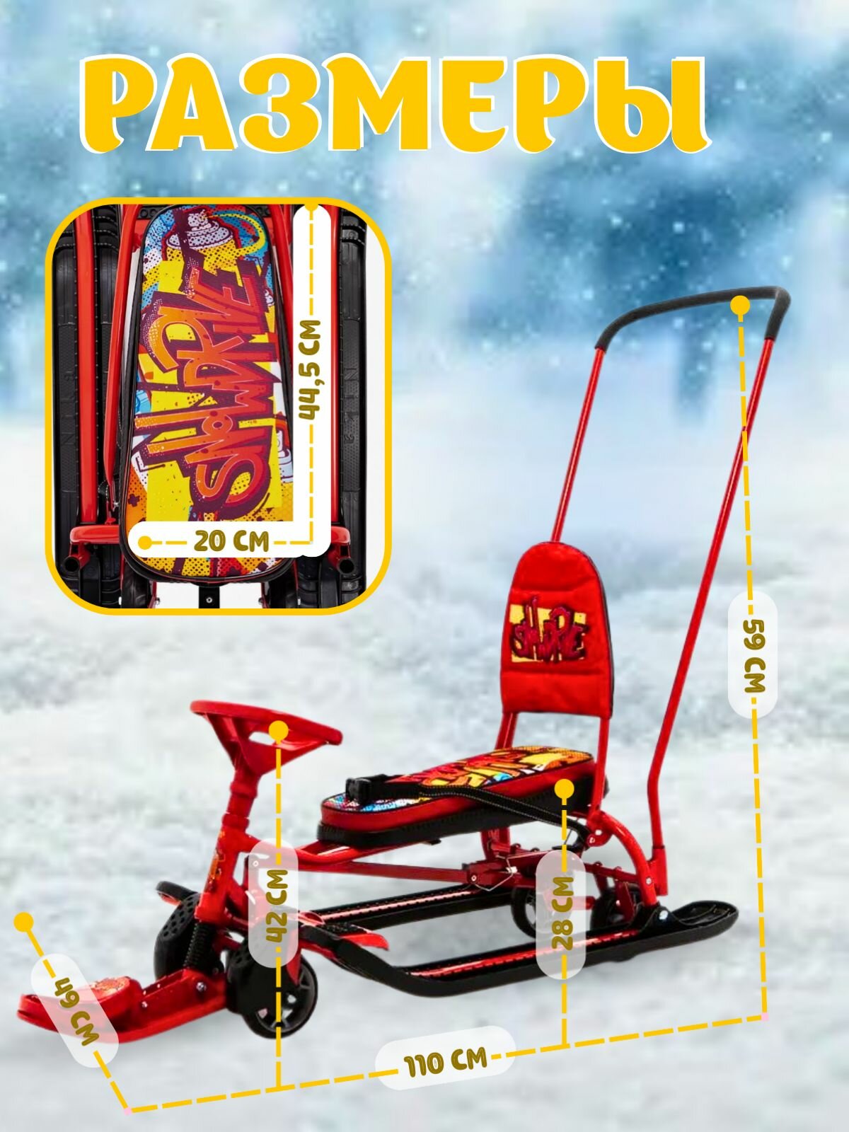 Снегокат для детей с выдвижными колёсами, родительской ручкой, Nika, ТС6-М/К