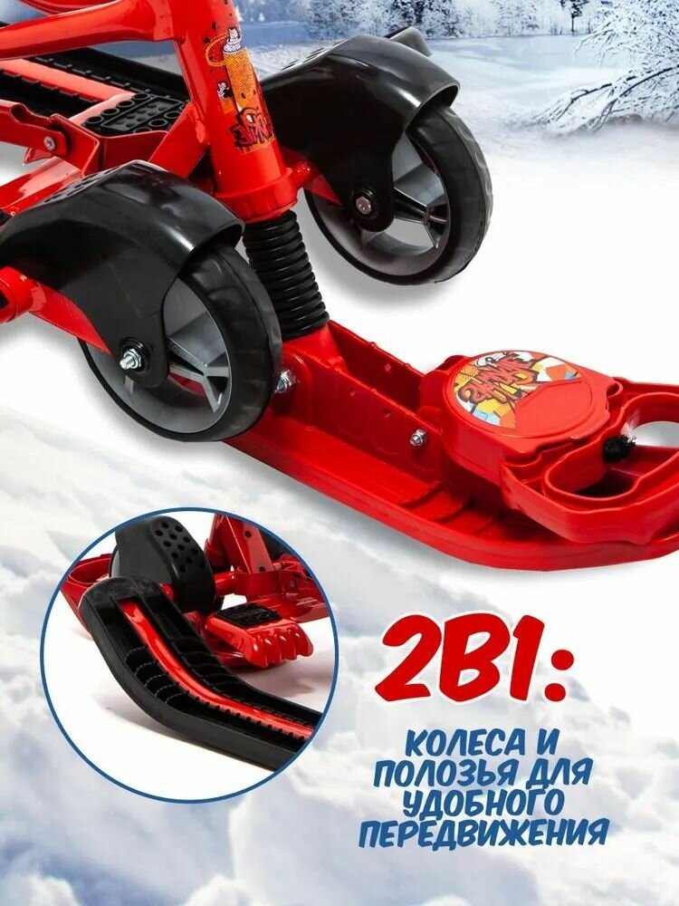 Снегокат детский с колёсами Тимка спорт 6 , граффити, красный