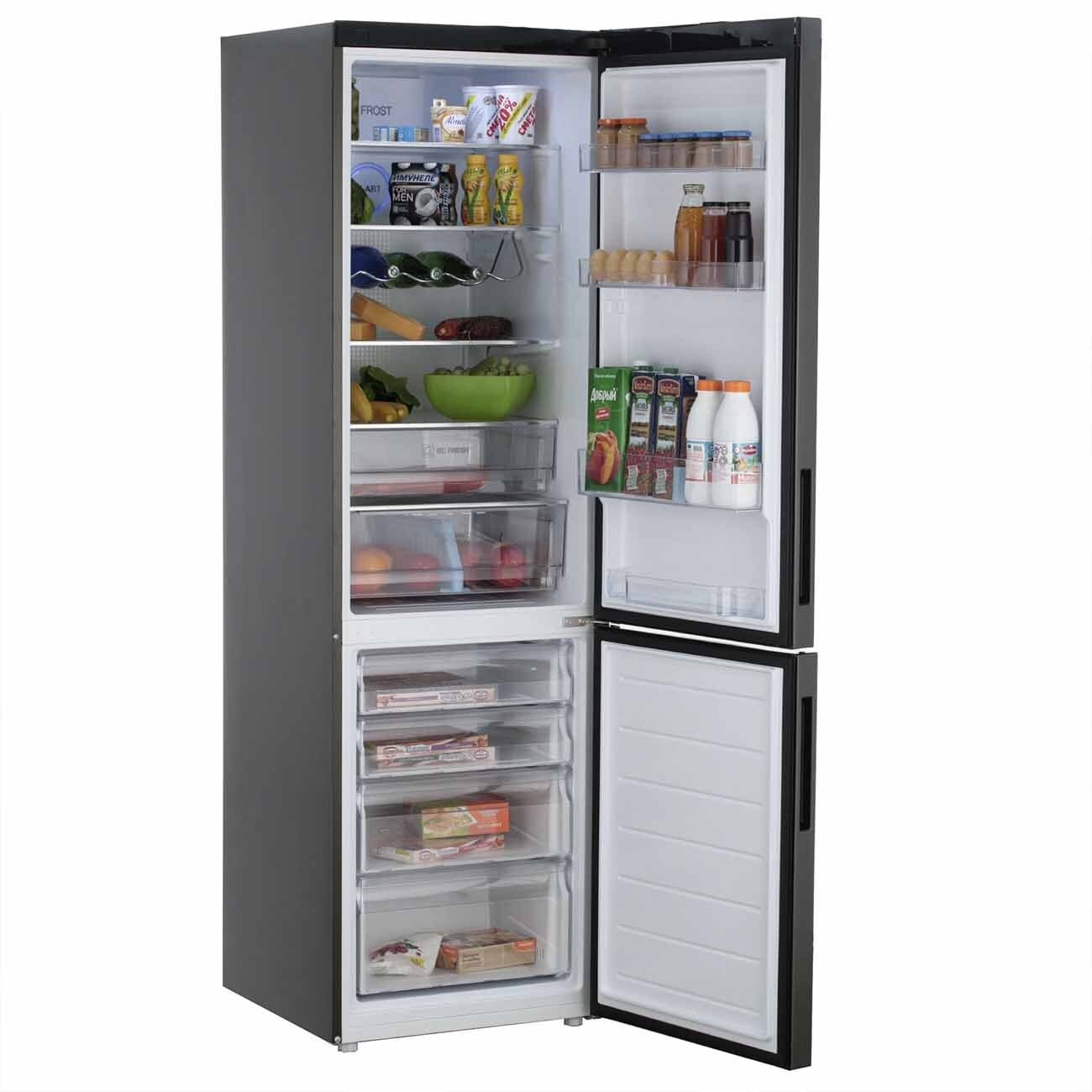 | Плюсы: | Красивый дизайн.Дверцы цвета графит полуглянцевые,боковины черные матовые,структурной покраски.Полный ноуфрост,не надо ничего размораживать.Довольно тихо работает. Сразу подключил его через стабилизатор,для большего срока службы,как советуют специалисты. Боковые стенки греются не сильно.Морозит и холодит отлично.Очень вместительная морозилка с четырьмя выдвижными ящиками . Два ящика с зоной свежести,очень яркая светодиодная подсветка внутри. Звуковой сигнал открытой двери включается через несколько минут,и не очень громкий. Цифровой дисплей,который выключается через некоторое время после закрытия дверцы. |