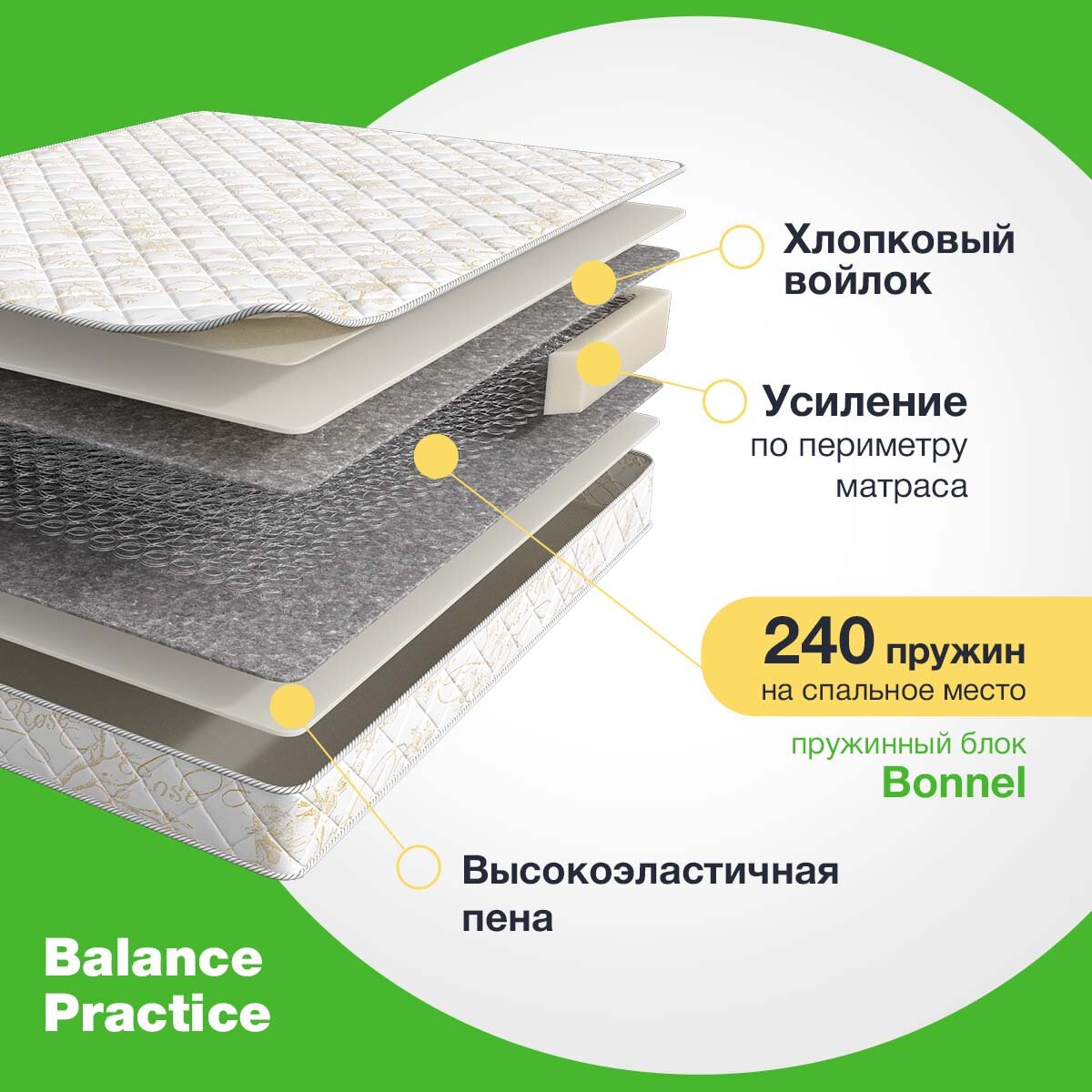 Матрас Balance Practice 160х200, пружинный,средней жёсткости, 18см