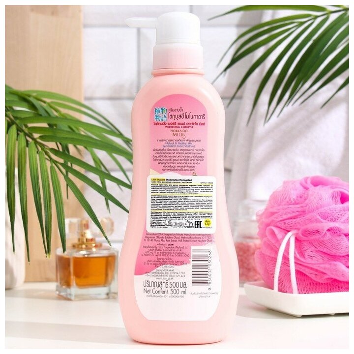 Крем-гель для душа Shokubutsu Whitening Cherry & Hokkaido Milk, 500 мл, 500 г