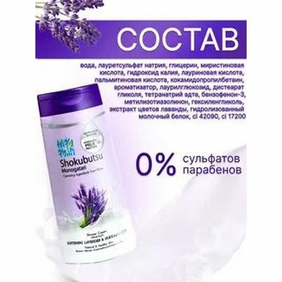 Крем-гель для душа Shokubutsu Лаванда и Молочко Хоккайдо, 200мл