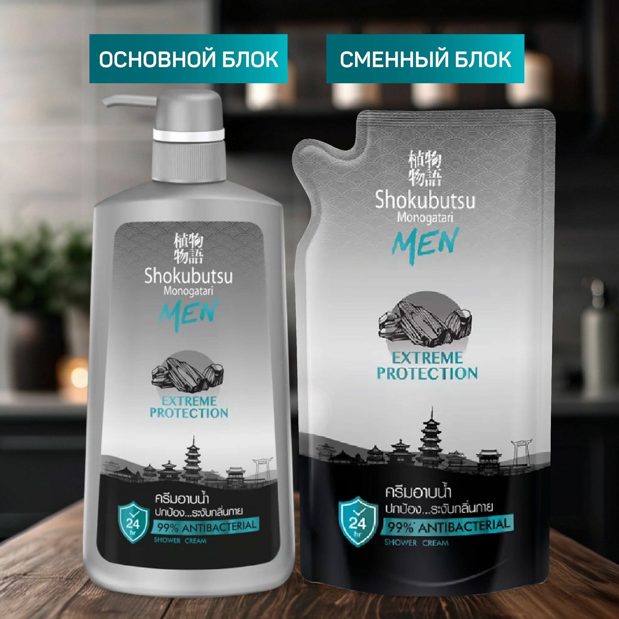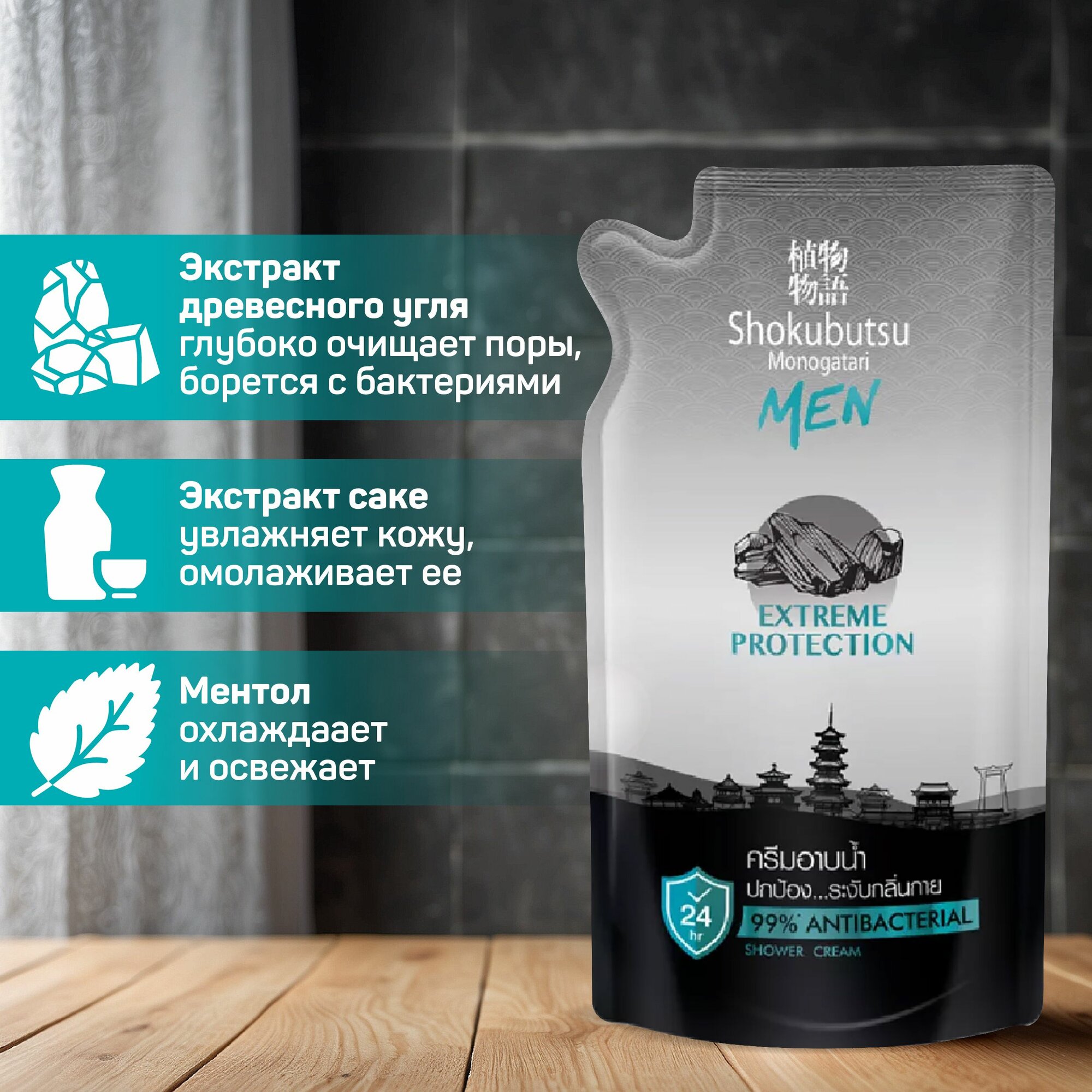 Купить Крем-гель для душа мужской Lion THAILAND Shokubutsu Extreme Protection, Экстремальная защита, 500 мл (дой-пак)
