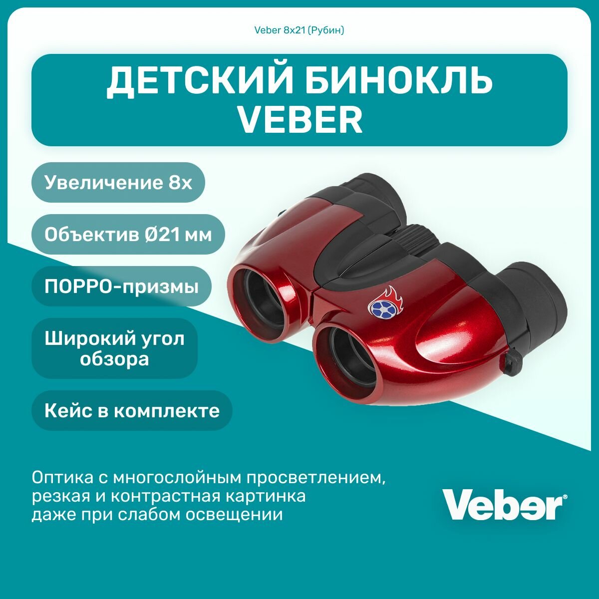Бинокль Veber 8х21 (Рубин) универсальный, бинокль с увеличением 8х