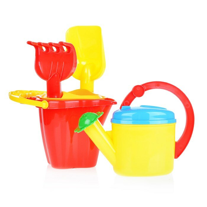 Песочный набор № 118 (ведро 0,6 л, сито, грабли 19 см, совок 19 см, лейка 0,3 л)
