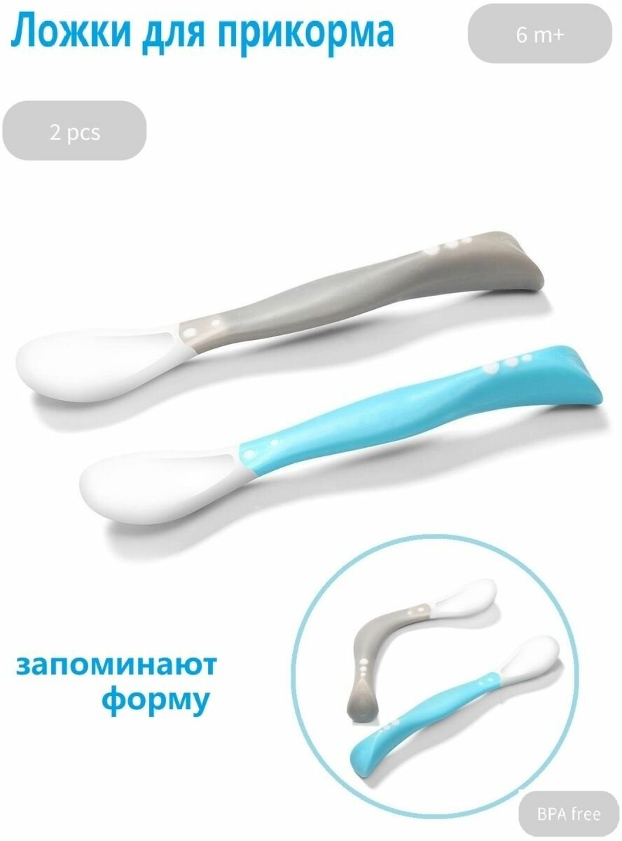 Набор ложечек 2шт. (серая/бирюзовая) гибкие. интересное: