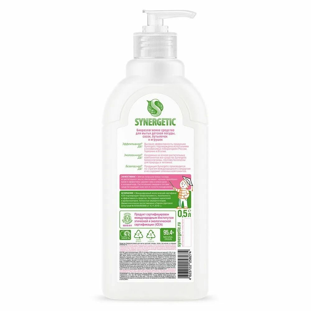 Средство для мыться SYNERGETIC детской посуды, сосок, бутылочек и игрушек 500мл 4623722258274