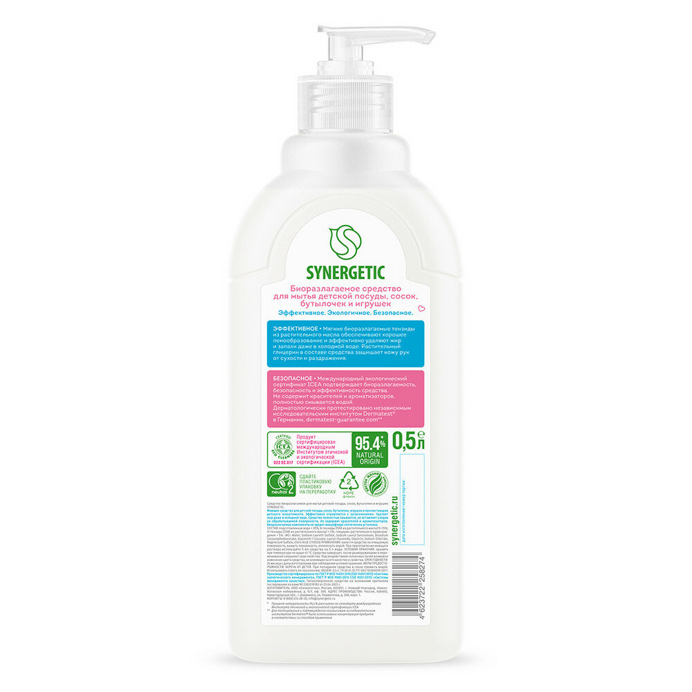 Средство для мыться SYNERGETIC детской посуды, сосок, бутылочек и игрушек 500мл 4623722258274