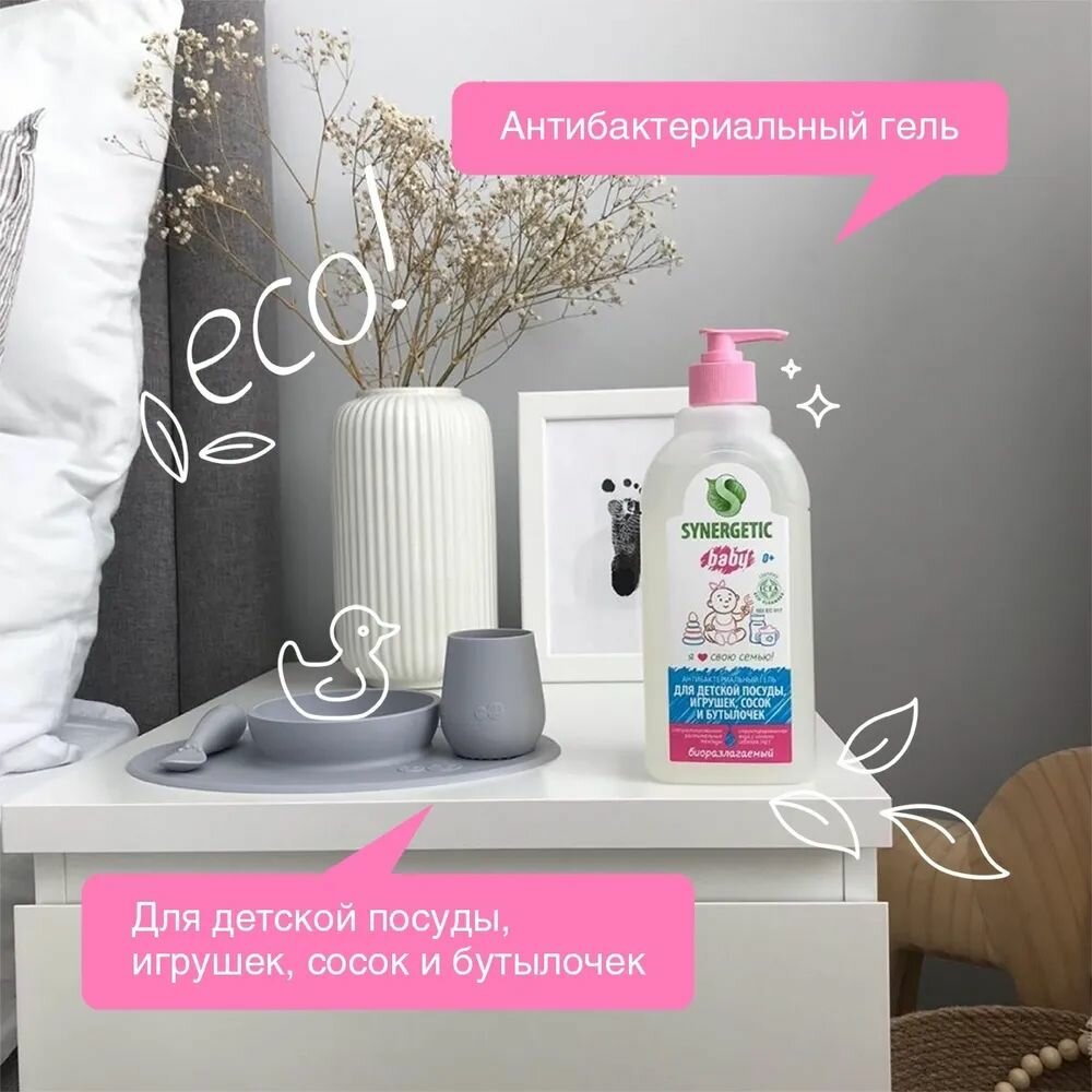 Synergetic Антибактериальный гель для мытья детской посуды, игрушек, сосок и бутылочек 500 мл x 2 шт.